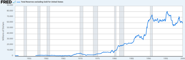 An important and often overlooked driver of this transition was the evolving role of central banks. Even without the United States, global central bank gold holdings increased by 1,256% between 1970 and 1995. This marked a dramatic shift in reserve management philosophy—one that reclassified gold not only as a hedge, but as a core reserve asset. As more central banks integrated gold into their portfolios, demand steadied, speculation declined, and volatility structurally subsided. Figure 1 shows the huge accumulation of gold by global central banks (ex US) between 1970 and 1995.